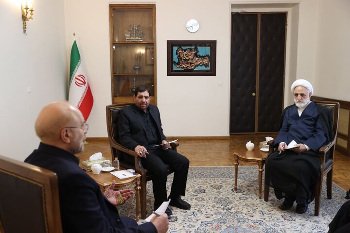قالیباف و حجت الاسلام والمسلمین محسنی اژه ای، روسای دو قوه مقننه و قضاییه ضمن تسلیت به رهبری معظم انقلاب، مردم شریف ایران و معاون اول رئیس جمهور و اعضای دولت بر همکاری کامل با مخبر برای انجام وظایف قوه مجریه تاکید کردند.